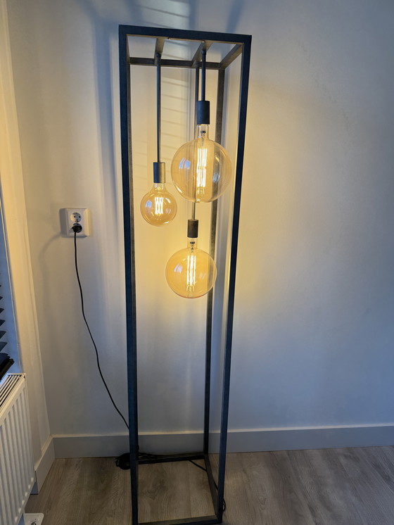 Verlicht uw ruimte met deze opvallende industriële vloerlamp, met een minimalistisch metalen frame dat elegant drie stralende glazen bollen herbergt. Dit stuk combineert moeiteloos functionaliteit met modern design en is daarmee een perfecte aanvulling op elk eigentijds interieur.