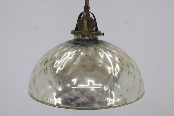 Zeldzame Mercurius Glas hanger gemaakt in het begin van de 20e eeuw, in Europa. Gemaakt van glas en metaal. Opnieuw gepolijst, schoongemaakt, vertoont tekenen van gebruik en ouderdom. Volledig functioneel.