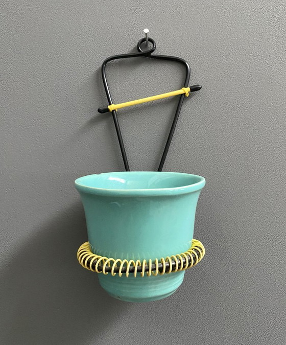 Deze charmante set met bloempot en plantenhanger stamt uit de jaren 60. De set bestaat uit een prachtige groene keramische pot, perfect geplaatst in een zwart-gele metalen houder, die een vleugje kleur en retro charme toevoegt aan elke ruimte. Ideaal om je favoriete planten in te presenteren, is deze plantenhanger een unieke combinatie van functionaliteit en vintage stijl.