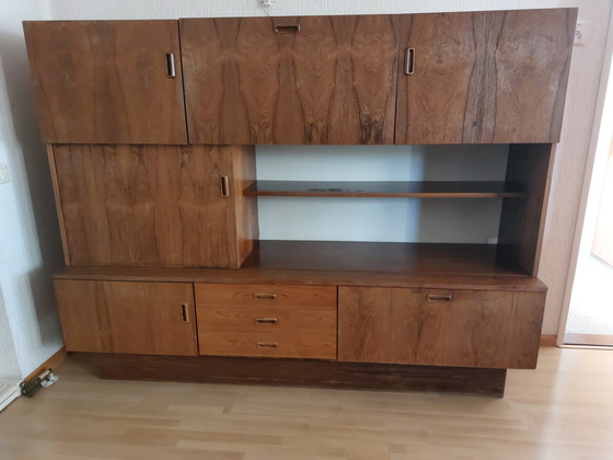 1 deel heeft een schuifdeur, in dat kastje kon de tv worden gezet op een uittrekbaar draaiplateau.
