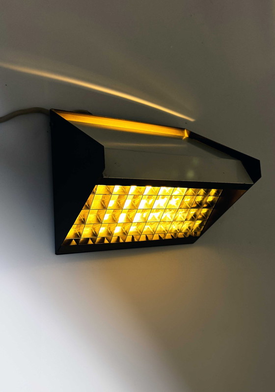 Deze wandlamp Model C-1573 van Raak Amsterdam werden ontworpen door het Raak ontwerpteam (waaronder Nanny Still-Mackinny, Tapiovaara Wirkkala en Frank Ligtelijn). In de Raak catalogus nr. 9 (1972) werd de wandlamp omschreven als een studeerlampje, leeslampje of lampje voor het soezerig nog wat lezen voor het slapen gaan. Ideaal voor de slaapkamer dus. Het vol-reflex louvre met zijn spiegelende facetten versterkt de lichtstroom. De lamp bevat geen breekbare delen en werd in het verleden dus ook ingezet in hotels en ziekenhuizen. De bovenplaat – gebroken wit – ligt verdiept in het bruine frame.