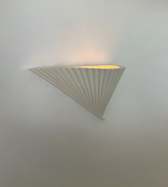 Wandlamp met een mat witte gipsen structuur, geproduceerd in Frankrijk in de jaren 1980.