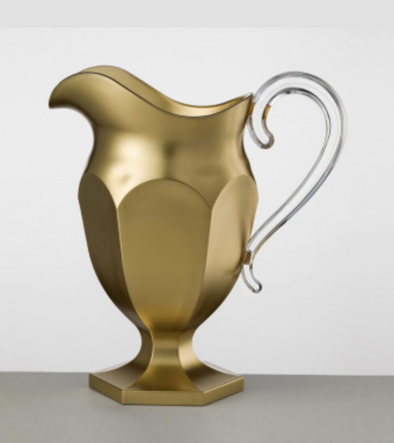 Waterkan & Karaf MariolucaGiusti, goudkleurig en Italiaans design. De kan is gemaakt van synthetic chrystal en staat prachtig op een feestelijk gedekte tafel.