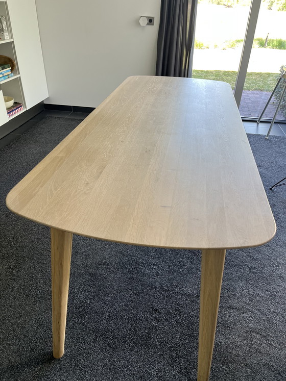 Ontdek de elegantie van deze witgewassen eiken eetkamertafel, vervaardigd door de gerenommeerde Machinefabriek Utrecht. Deze tafel combineert tijdloze stijl met moderne functionaliteit, waardoor het een perfecte aanvulling is op elke eetkamer. Het subtiele witgewassen eikenhout straalt een natuurlijke charme uit en biedt een warme, uitnodigende sfeer voor uw diners en bijeenkomsten. De stevige constructie en het vakmanschap zorgen ervoor dat deze tafel jarenlang meegaat, terwijl het strakke ontwerp moeiteloos past in zowel klassieke als eigentijdse interieurs. Voeg een vleugje verfijning toe aan uw huis met deze prachtige eetkamertafel en geniet van de veelzijdigheid en schoonheid die het biedt.