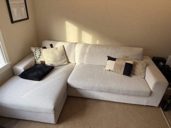 Witte bank van Decor Amsterdam, model “Milan”. Geleverd in juni 2023. Vanwege de komst van een kind moet de kamer opnieuw worden ingericht. De bank bestaat uit 2 delen.