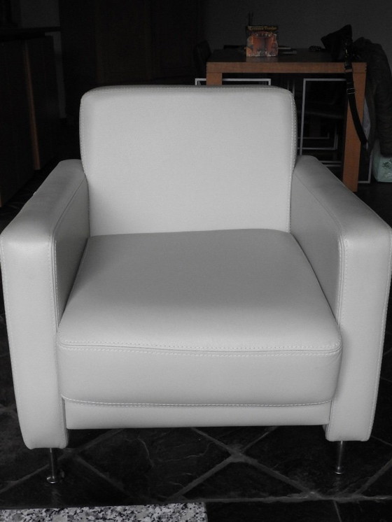 Deze elegante witte éénpersoonszetel biedt een verfijnde toevoeging aan elk interieur. Met zijn strakke lijnen en moderne uitstraling past hij perfect in zowel klassieke als hedendaagse woonruimtes. De zetel is bekleed met hoogwaardig leer, wat niet alleen een luxueuze uitstraling geeft, maar ook zorgt voor duurzaamheid en comfort.