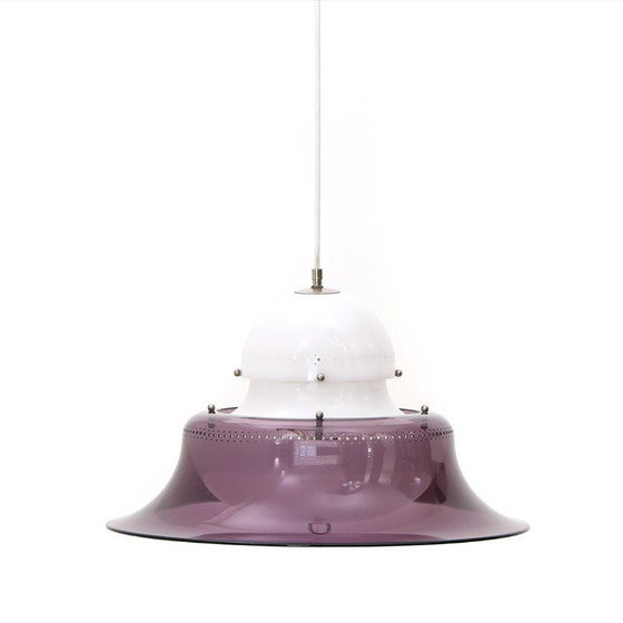 Witte en paarse "KD14" kroonluchter van Sergio Asti voor Kartell, jaren 70.