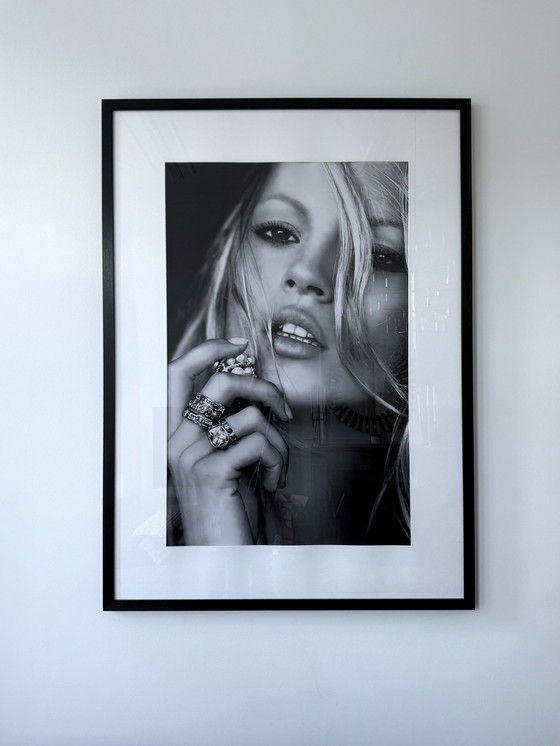 Extra grote in hout ingelijste zwart-wit foto van Kate Moss