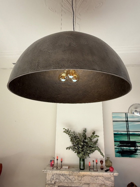 Ik heb deze zeer bijzondere en buitengewoon hoogwaardige DOME Lamp handgemaakt van het exclusieve Dutch Design merk POLDR. Je ziet het in winkels, hotels, restaurants en tentoonstellingen en het is niet te vergelijken met alle goedkope producties die je online kunt vinden. Het materiaal is heel bijzonder en de bronskleur reflecteert geweldig in het licht in de kamer. Ook de binnenkant geeft een warm licht en het metalen oppervlak ziet er handgemaakt uit. Wij zijn er dol op, maar past helaas vanwege de positie en het formaat niet meer in onze kamer. Het heeft een diameter van 100 cm. Wij hebben er bijna 4000 euro voor betaald. Neem contact met mij op voor meer informatie en foto's. Te koop is alleen de hanglamp