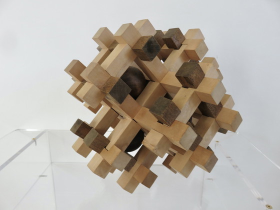 Grote houten puzzel met meerdere ballen, XXL, 1970. Mogelijk gemaakt door Sori Yanagi. 6 houten ballen zijn ingesloten. Spanwijdte 30cm x 30cm. Gewicht 2.850kg. Een prachtig decoratief object, in goede staat en steeds zeldzamer.