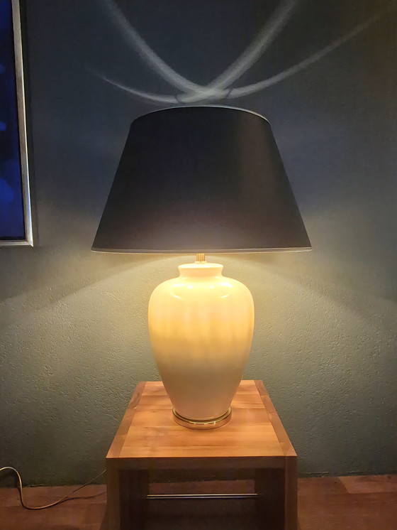 Maak kennis met deze XXL tafellamp, een echte blikvanger voor je interieur. Met zijn elegante uitstraling en royale formaat is deze lamp perfect om een statement te maken in elke kamer. Stel je voor hoe deze lamp je woonkamer of slaapkamer verlicht met een warme gloed, terwijl hij ook een vleugje stijl toevoegt aan je ruimte.