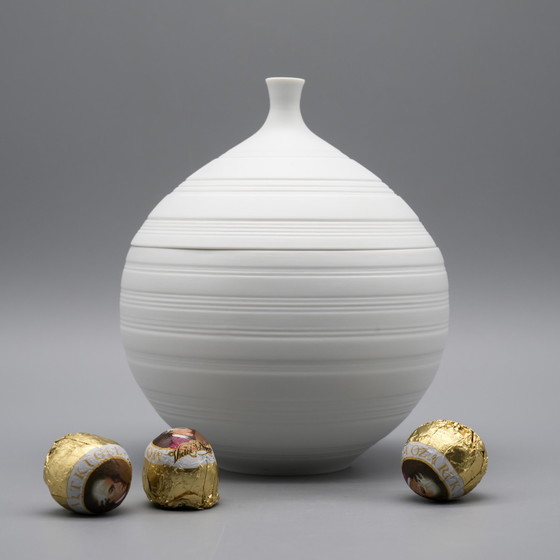 Dit prachtige stuk belichaamt de gedurfde en innovatieve geest van de jaren 1970 Space Age Pop Art-beweging. Dit ongeglazuurde porseleinen doosje is ontworpen door Hans Achtziger, een bekende figuur in het midden van de 20e eeuw en toont het beroemde vakmanschap van Hutschenreuther. Het stuk is afkomstig uit Beieren, een regio met een lange traditie in de porseleinproductie.
