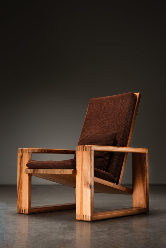 Deze loungestoel laat het karakteristieke vakmanschap en oog voor detail zien waar Van Apeldoorns ontwerpen bekend om staan. Het gebruik van vurenhout is welbekend voor de ontwerpen van Ate. Het gebruik van vurenhout geeft de stoel niet alleen een warme en uitnodigende uitstraling, maar benadrukt ook de natuurlijke schoonheid van het materiaal.