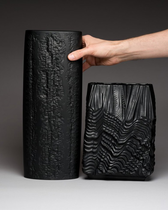 Beide vazen worden niet alleen gekenmerkt door hun materiaal en ontwerper, maar ook door hun gedeelde visuele stijl: **matzwarte, sculpturale lichamen met glanzende zwarte accenten**, meeslepende reliëfs en het strakke minimalisme dat Rosenthals meest innovatieve decennia definieerde.