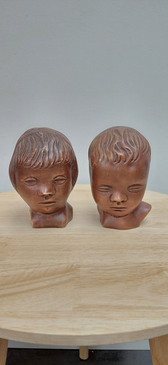 Te koop: een prachtig bewaard gebleven duo van de bekende Amsterdamse Gebroeders Van Paridon. Deze karakteristieke kinderkopjes (modelnummer 240 en 241) zijn vervaardigd in hun befaamde atelier aan de Prinsengracht en ademen de sfeer van de vroege 20e eeuw.