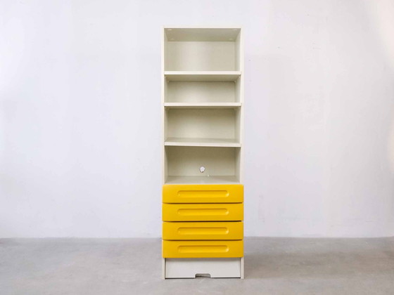 Stap in de toekomst van het verleden met deze zeldzame Space Age kast van Gwinner, een opvallend stuk uit de jaren 1970. Dit model, bekend als 'noro', vat de essentie van een tijdperk dat werd gedefinieerd door gedurfd design en innovatieve esthetiek. De levendige gele lades en het slanke witte frame maken het een opvallende aanwinst voor elke kamer, met zowel stijl als functionaliteit.
