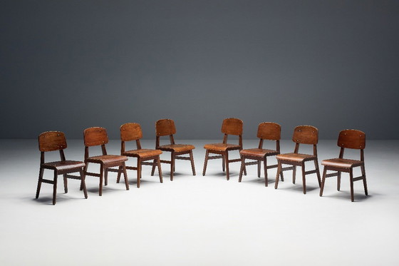 In tegenstelling tot de stoelen met een metalen frame uit die tijd, zijn deze ontwerpen volledig in hout uitgevoerd - een technische uitdaging die overwonnen werd door Prouvé's toewijding aan structurele helderheid en materiaalintegriteit. Het resultaat is een serie functionele, modernistische vormen die ondanks hun minimalistische inslag toch hun kracht en elegantie behouden.