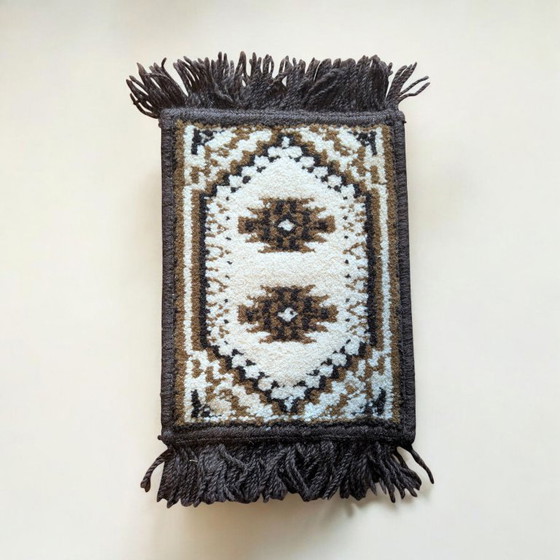 Zeldzame vintage tafelloper in oosterse/etnische stijl – 24 × 40 cm – Bruin & Beige – Zeer goede staat