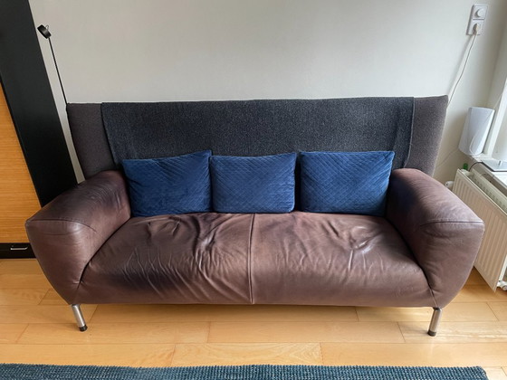Ontdek de tijdloze elegantie van de High Noon 3-zits bank, ontworpen door de gerenommeerde Gerard van den Berg voor Label in de jaren '90. Deze bank combineert luxe leer met zachte stof, wat zorgt voor een verfijnde en moderne uitstraling die moeiteloos in elk interieur past. De roestvrijstalen poten met zwarte kunststof doppen geven een strakke en eigentijdse afwerking. Met de originele cyclaamkleurige kussens en de optie voor blauwe overtrekken, biedt deze bank veelzijdigheid in stijl en comfort.