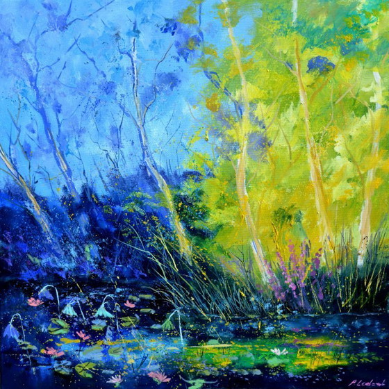 - **Rijk kleurenpalet**: Tinten blauw, groen, geel en roze vloeien harmonieus samen en creëren een vredige en stralende sfeer.