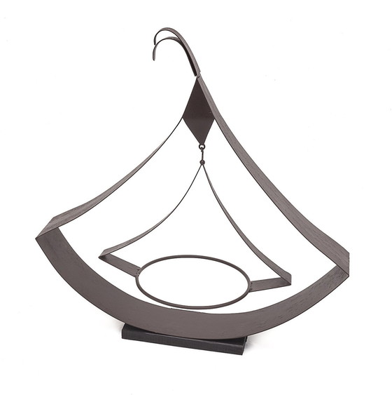 Smeedijzeren plantenstandaard met schommel. Diameter ring: 21 cm Circa 1960