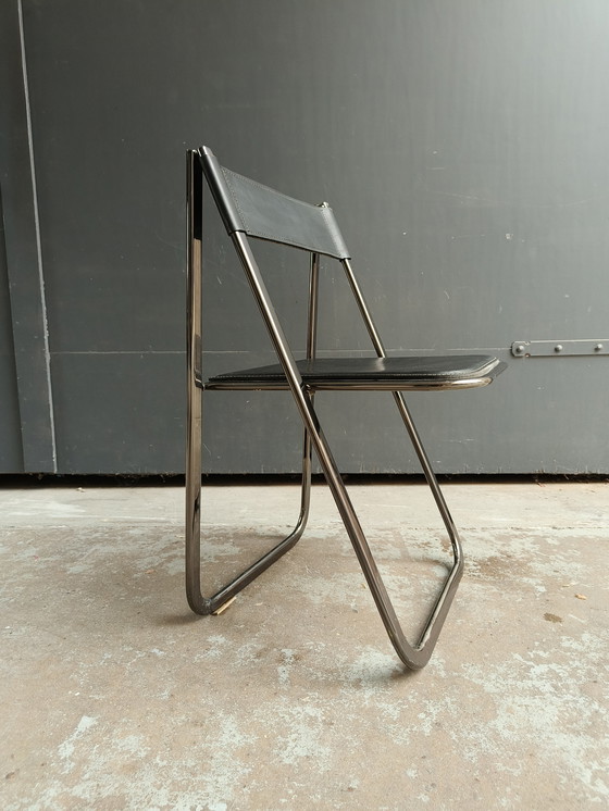 Zwart Lederen Vintage Jaren 70 "Tamara" Folding Chair by Arrben Italy