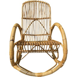 Vintage schommelstoel van bamboe en rotanVintage schommelstoel van bamboe en rotan