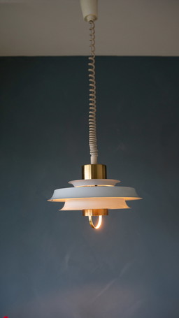 Mid-Century Messing en Glas hanglampMid-Century Messing en Glas hanglamp