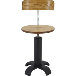 Vintage hoge industriële draaifauteuil F van hout en metaal, 1950Vintage hoge industriële draaifauteuil F van hout en metaal, 1950