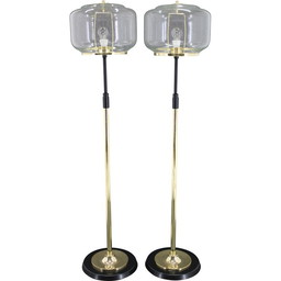 Paar vintage vloerlampen van glas en messing van Kamenicky Senov, Tsjecho-Slowakije 1970