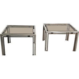Paar vintage chromen en messing bijzettafeltjes, Italië 1970