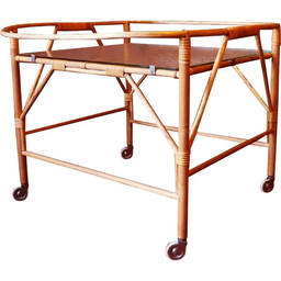 Vintage serveerwagen van bamboe en mat glas, 1960
