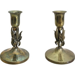 Paar vintage messing kandelaars, Frankrijk 1970Paar vintage messing kandelaars, Frankrijk 1970
