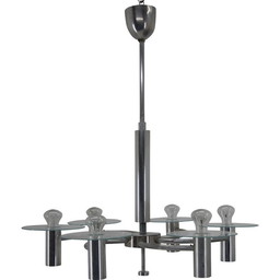 Vintage kroonluchter van chroom en glas, Tsjecho-Slowakije 1960