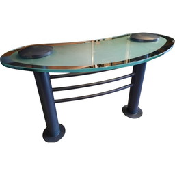 Vintage glazen en koperen bijzettafel 1970Vintage glazen en koperen bijzettafel 1970
