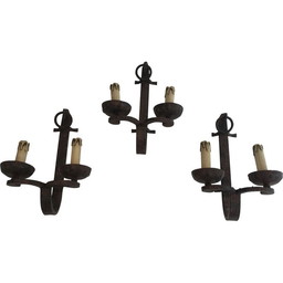 Set van 3 vintage smeedijzeren wandlampen, 1950