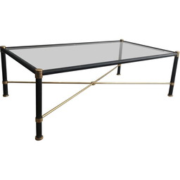 Vintage messing salontafel bekleed met zwart leer, 1970Vintage messing salontafel bekleed met zwart leer, 1970