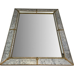 Vintage facetgeslepen spiegelmozaïek met bloemen en messing slingers, 1970