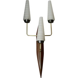 Vintage wandlamp van teakhout en messing, 1950Vintage wandlamp van teakhout en messing, 1950