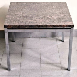 Vintage bijzettafel uit de jaren 70, roze graniet en verchroomd staal, DLG Florence Knoll