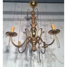 Set van één vintage kroonluchter en één wandlampSet van één vintage kroonluchter en één wandlamp