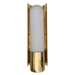 Vintage wandlamp in messing en opaal glas van Glashütte LimburgVintage wandlamp in messing en opaal glas van Glashütte Limburg
