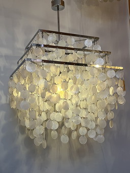 XXL capiz hanglamp vintage schelpen Chrome vierkant parelmoer