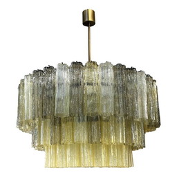 Italiaanse kroonluchter "Tronchi" van Murano-glas uit het midden van de 20e eeuw in amber en fumé – Simoeng