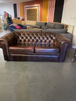 Engelse leren 2-zitsbank met karakterEngelse leren 2-zitsbank met karakter