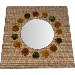 Vintage spiegel van raffia en keramiek, Frankrijk 1950