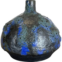 Vintage bruin en blauw aardewerk dikke lava vaas van Scheurich, Duitsland 1970