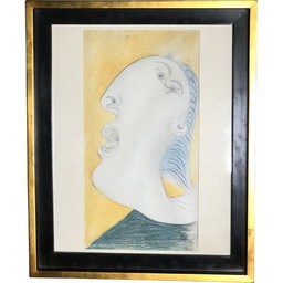 Oude reproductie van voorbereidende tekening "hoofd van een vrouw" van Picasso voor Guernica