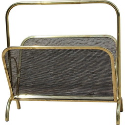 Vintage messing en zwart gelakt metalen tijdschriftenrek, Italië 1970
