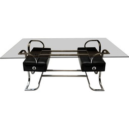 Vintage salontafel met dubbel bovenblad van Jacques Adnet, 1980